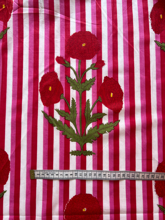 cotton fabric | black, grey stripe with pink & yellow bouquet