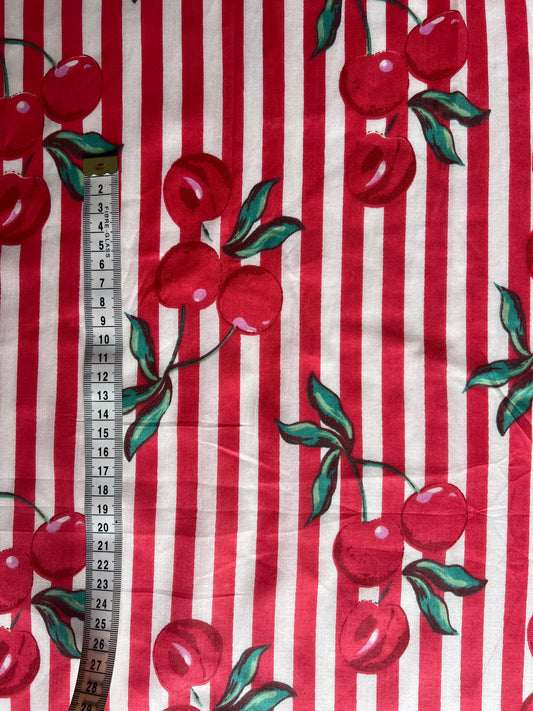 cotton fabric | cherries cherry red & white stripe