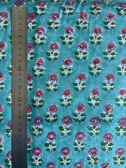 cotton fabric | aqua green, soft pink & green small buds