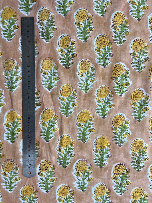 cotton fabric | pink green natural little buds