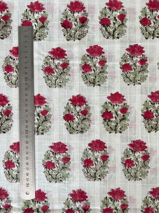 self check cotton fabric | raspberry floral oval