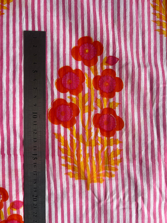 cotton fabric | pink fine stripe pretty pink, orange & yellow floral bunch