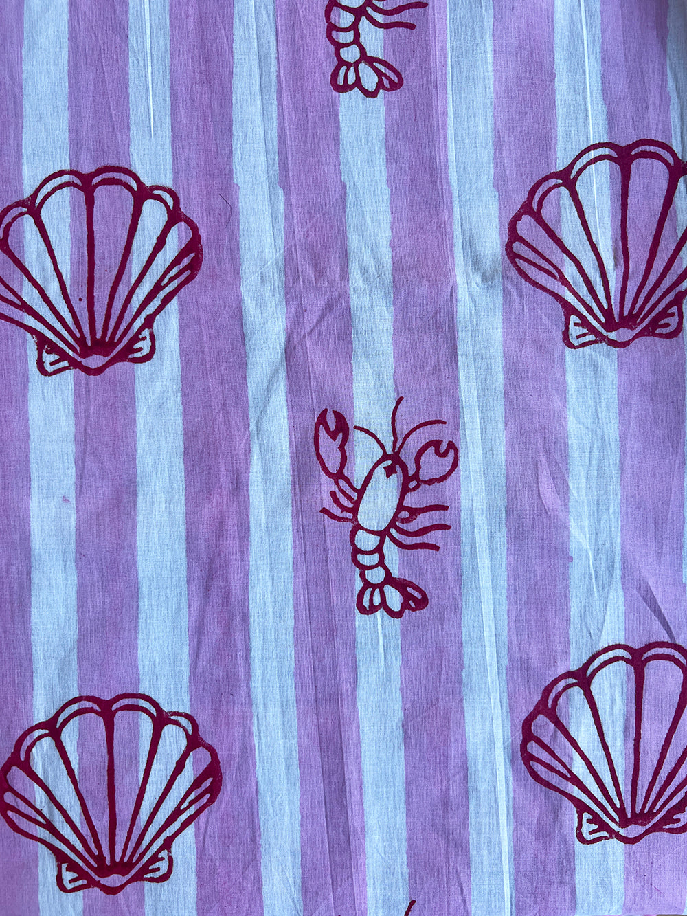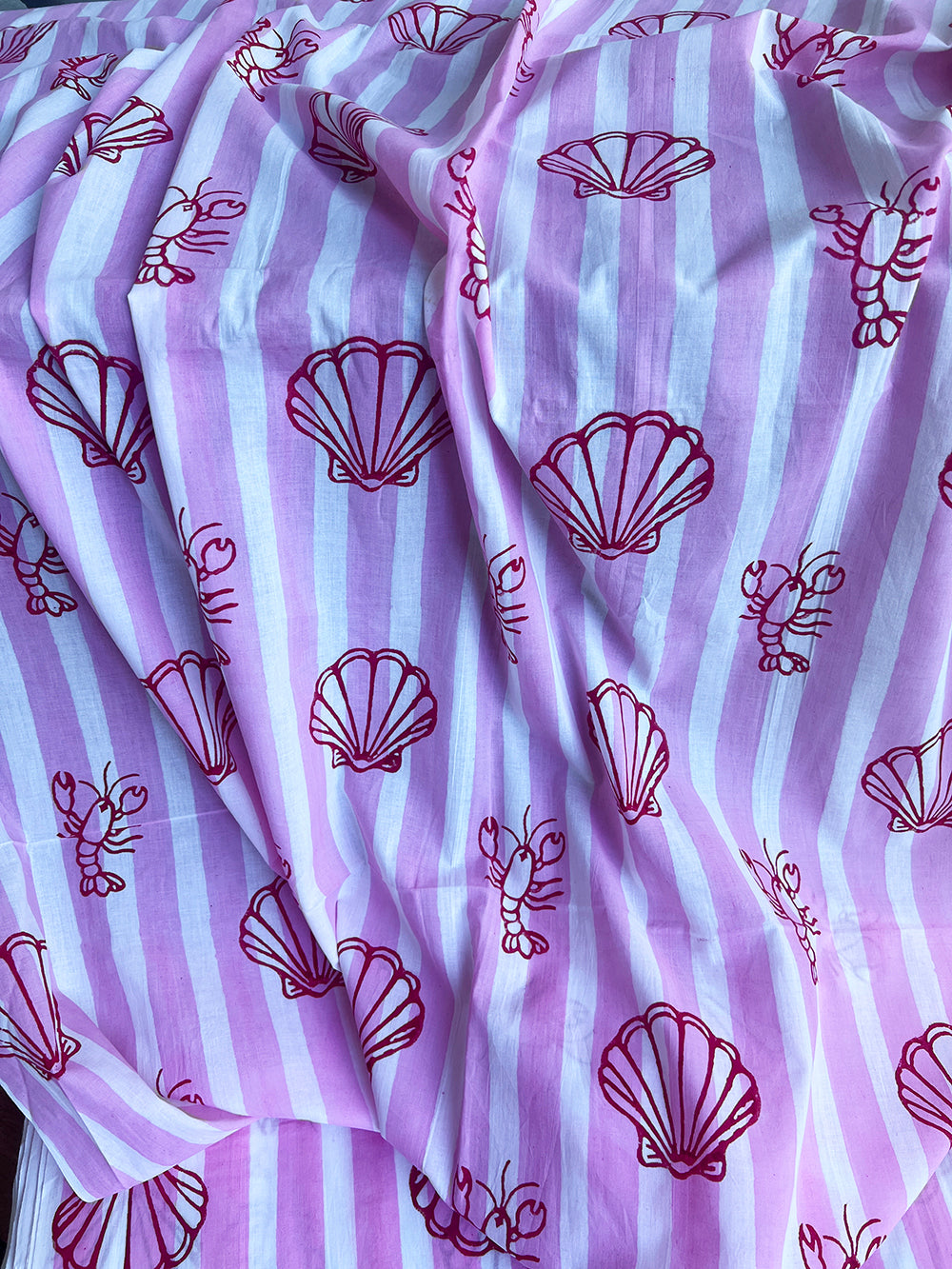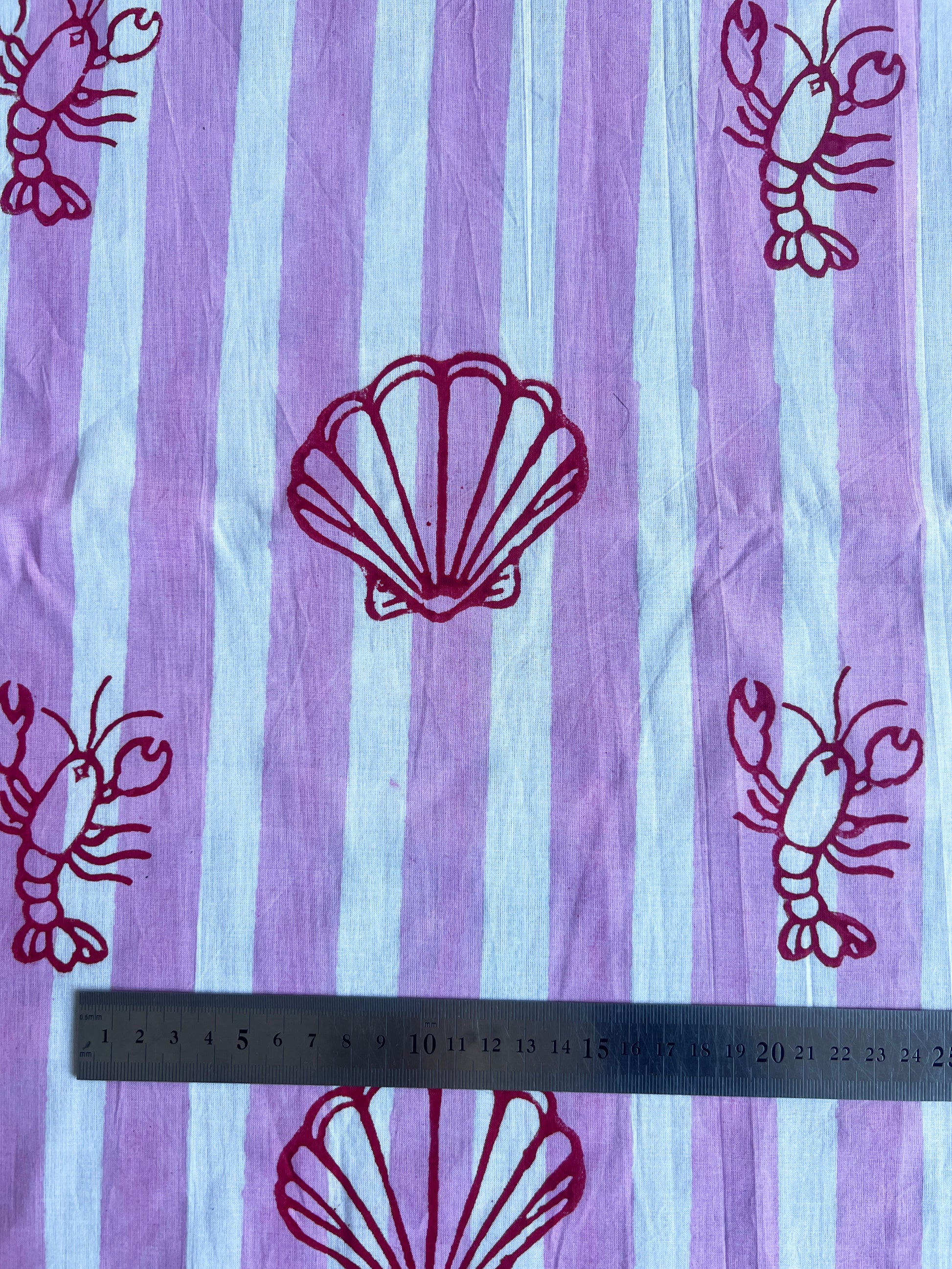 cotton fabric | musk pink and white stripe with mini lobster and shell